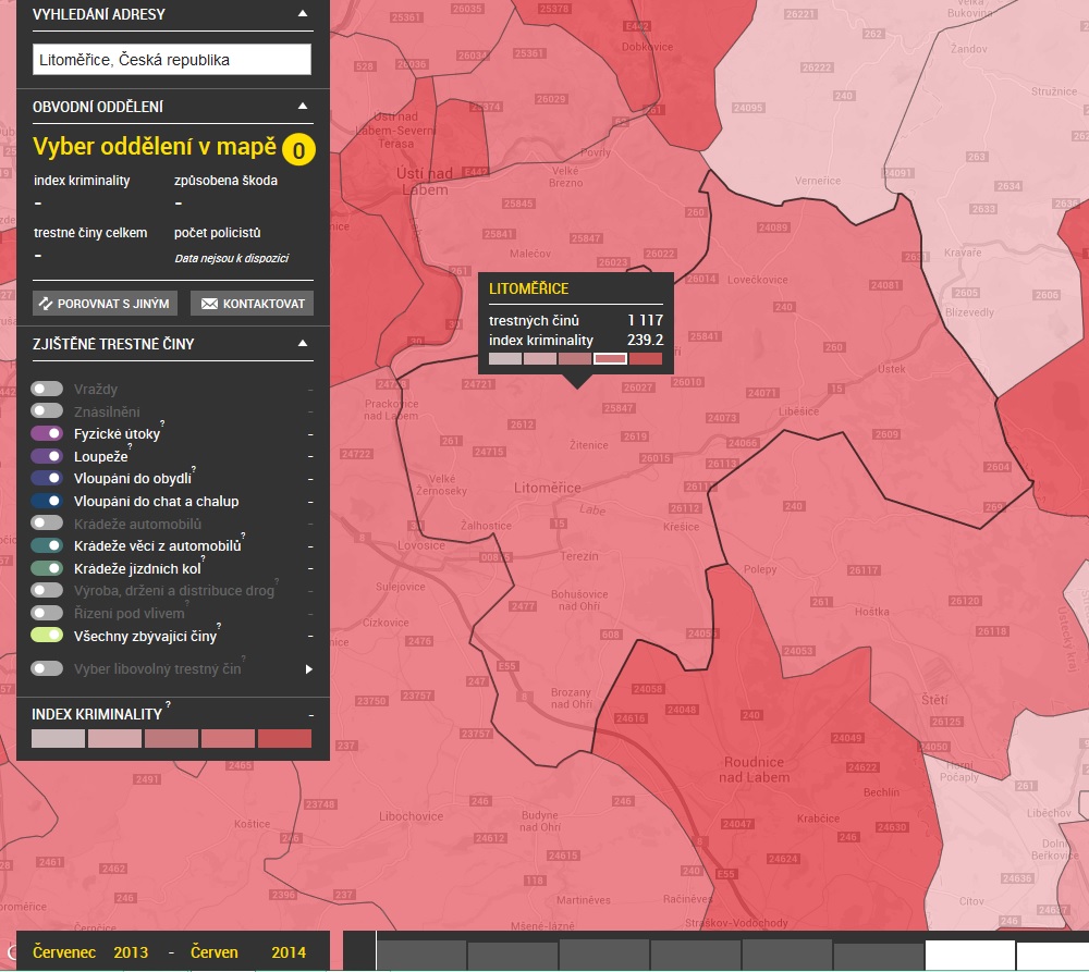 mapa kriminality (vybrané trestné činy) v okrese Litoměřice (období červenec 2013- červen 2014) // nepřijde mi, že bychom na tom byli s kriminalitou nějak extra dobře (jak se snaží tvrdit nepsaný mluvčí ODS Litoměřice)