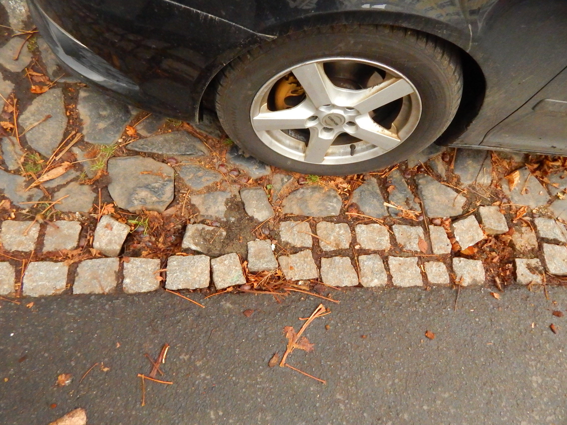 Tak stromy jsou v Palachovce zpět. Bohužel včetně toho u lékárny, který poroste rovnou do nové lampy :(. Nešvary se opakují znova. Auta koly v mikroprostoru pro stromy.