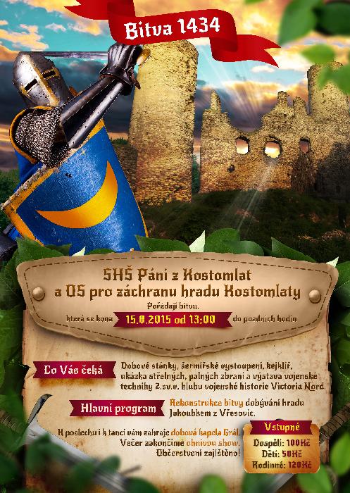15.8. od 13 hod. do pozdních hodin proběhne "Bitva 1434" na hradu Kostomlaty.