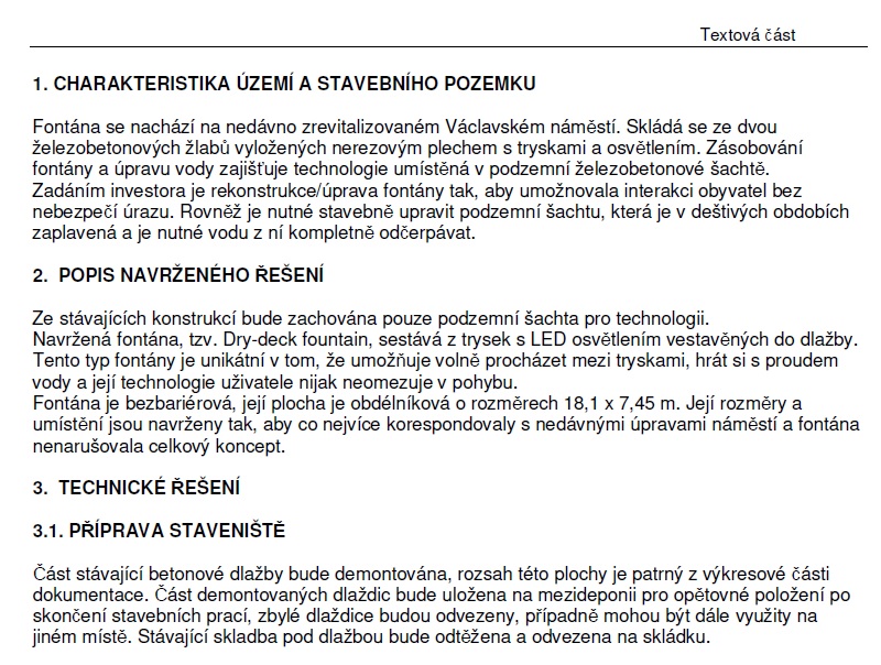 Viděl jsem projektovou dokumentaci. Je psána jako rekonstrukce stávající fontány. Kvůli bezpečnosti a problémům s podzemní nádrží. Tak se, chtě nechtě, muselo bourat...