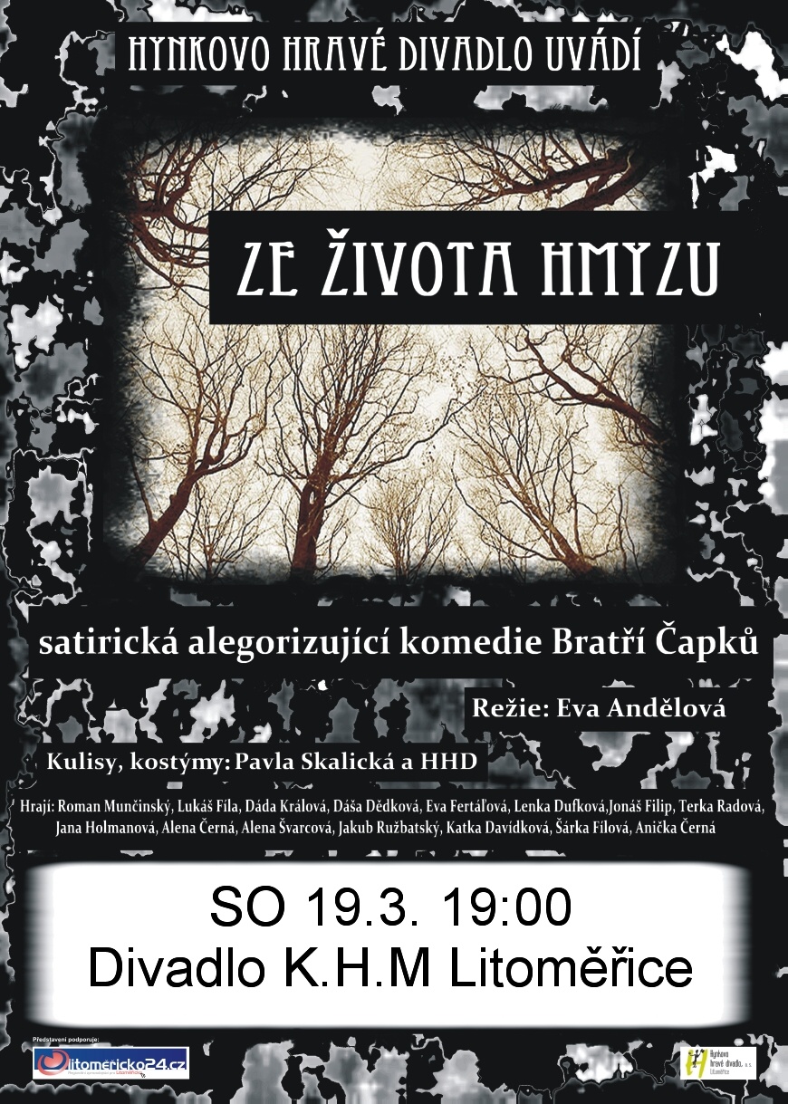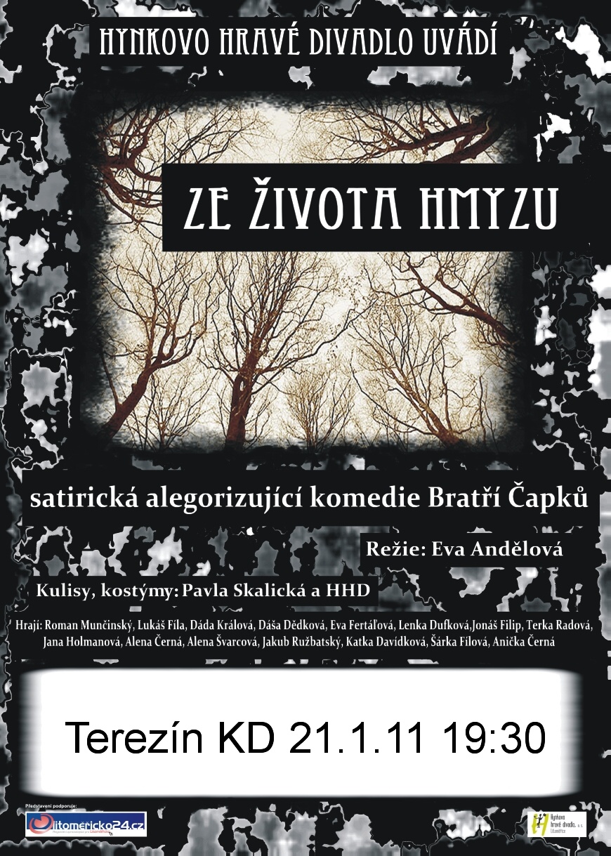 Nedělní představení Ze života hmyzu se posouvá z 15:30 na 16:00 z technických důvodů, slavnostní ukončení bude následovat. Na ukázku ze hry Ze života hmyzu je vstup volný.
