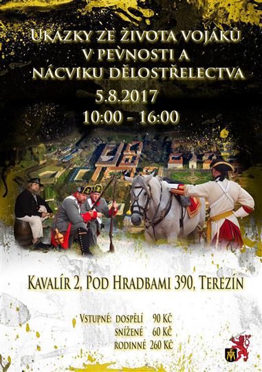 Ukázky ze života vojáků v pevnosti a nácviku dělostřelectva v Terezíne dne 5.8.2017 od 10 hod. na Kavalíru 2.