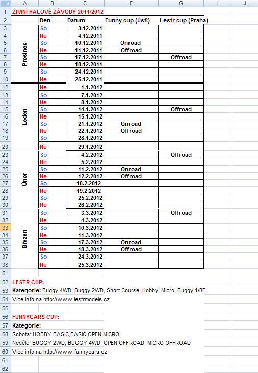 Přes zimní období se pořádá seriál závodů FUNNYCARS CUPU KATEGORIE OFFROAD ZIMA 2011. I zde jsou naši závodníci hodně vidět. V prvním závodě v kategorii MIKRO obsadil Martin Lepič první místo a Vašek Nývlt druhé místo (takže jsme jim to trochu vybrali :-)).