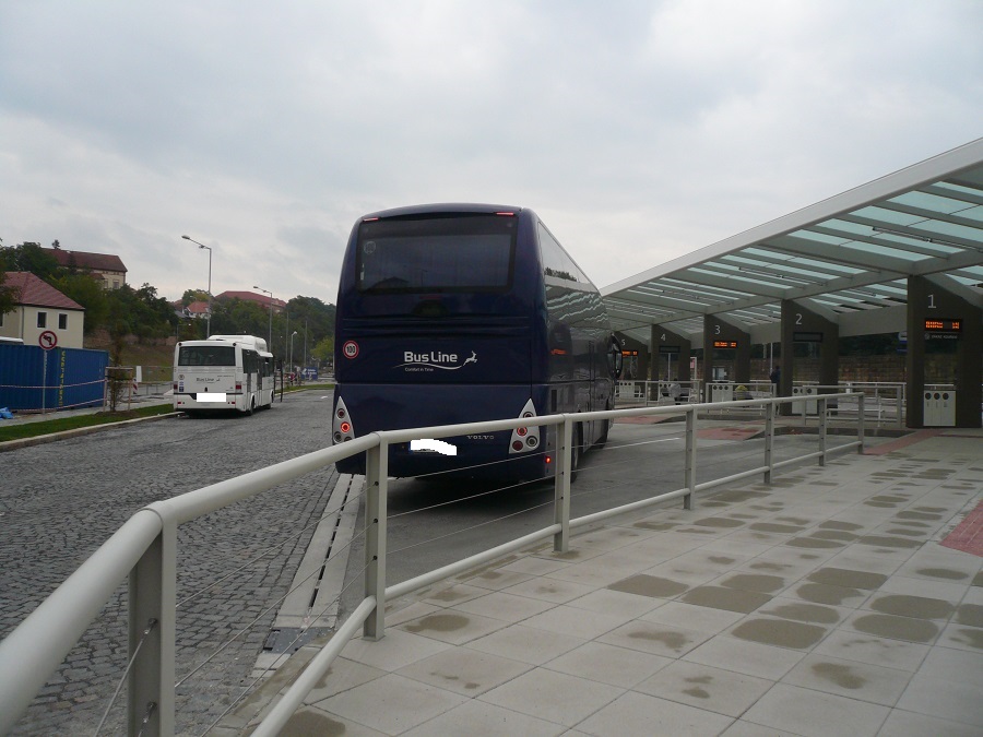 Pokud tedy trefí řidič autobusu správný vjezd, pokračuje po značně nerovné vozovce až k místu, kde bude odbočovat do nádraží vpravo. Zde narazí na první zúžení pomocí ostrůvku a musí si správně nadjet. Následuje další odbočení vpravo, kde díky vybudovanému prostoru pro trávník musí opět hodně nadjíždět, aby nevjel na obrubník. Projede nádražím ke svému stání. Naloží cestující a vycouvá zpět na vozovku. Přitom doufá, že se mu někdo nedostane za autobus kam nevidí. Většinou couvnou jen tolik, aby mohli pokud zde nejsou další autobusy projet napříč přes stání dalších autobusů. Při výjezdu čeká řidiče křižovatka, kde řidič, který vyjíždí musí na příkaz dopravní značky STOP zastavit vozidlo. Toto se nekoná. Ani jeden z řidičů vozidlo nezastavil. Ani se jim nedivím, protože při množství autobusů, které se tam potká by stačila dopravní značka Dej přednost v jízdě. Ale je možné, že se nějaké zvídavé dítko po absolvování výcviku cyklisty ve čtvrté třídě zeptá, jestli taky nemusí na kole zastavovat.