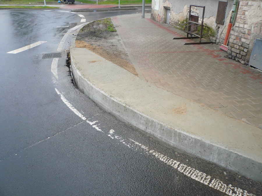 A je hotovo. Opět se může opravovat a opravovat ................ V současném stavu to není moc bezpečné pro chodce, ale nebezpečí proražení pneu návěsu je u tohoto vysokého obrubníku větší než dříve.