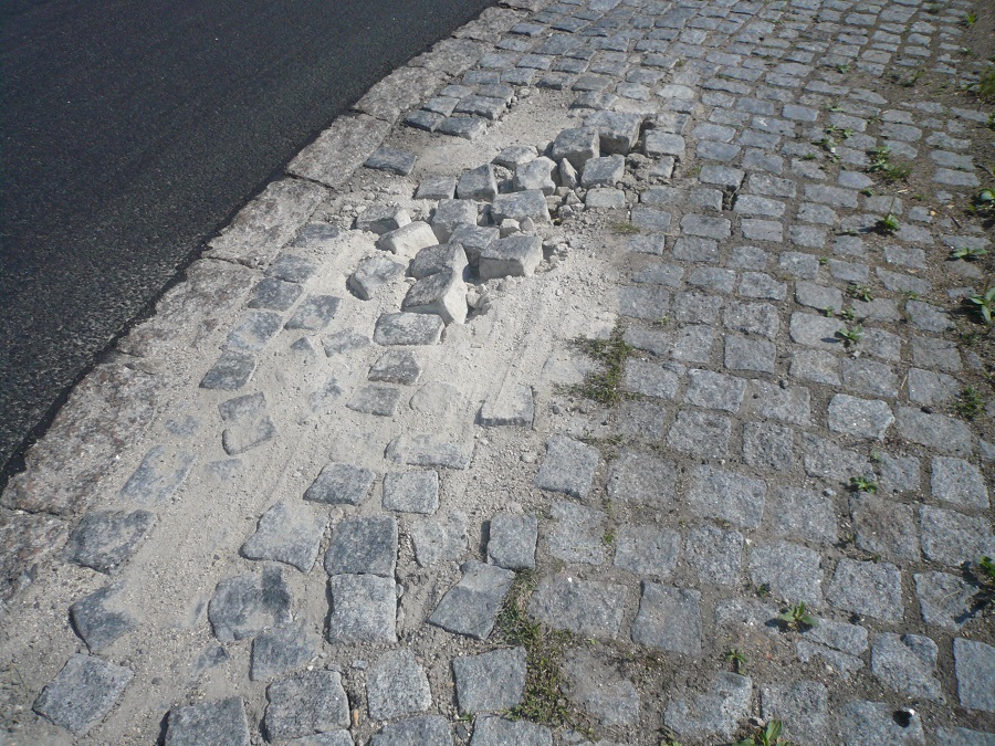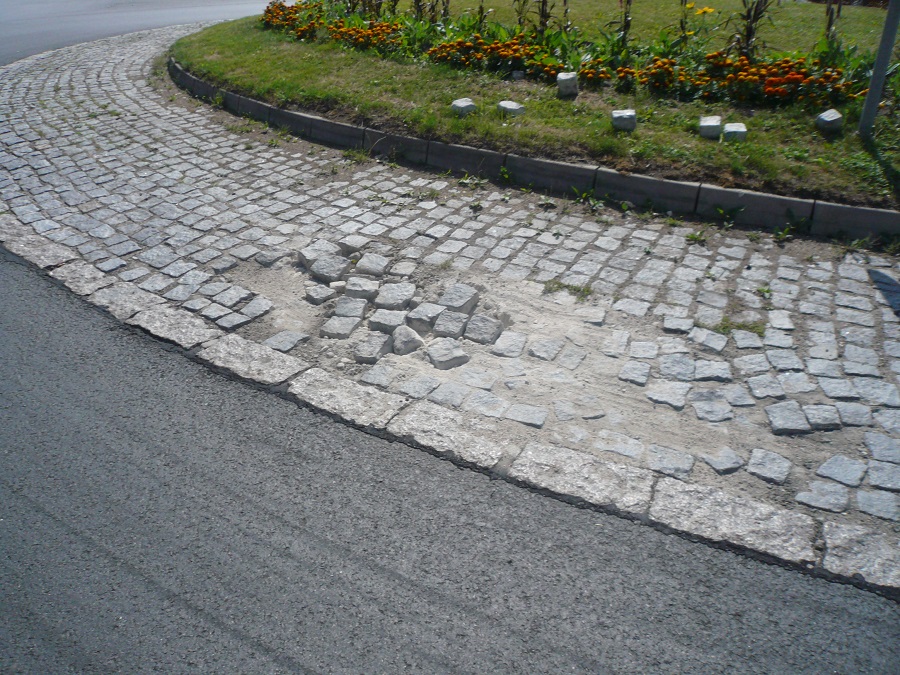 Takže je potřeba pochválit, že máme přes Litoměřice hezký nový asfaltový povrch, ale nadále budou zdobit tyto kruhové objezdy povalující se dlažební kostky a nadále je bude někdo na krátkou dobu opět usazovat, tak aby se zase objevily na vozovce.