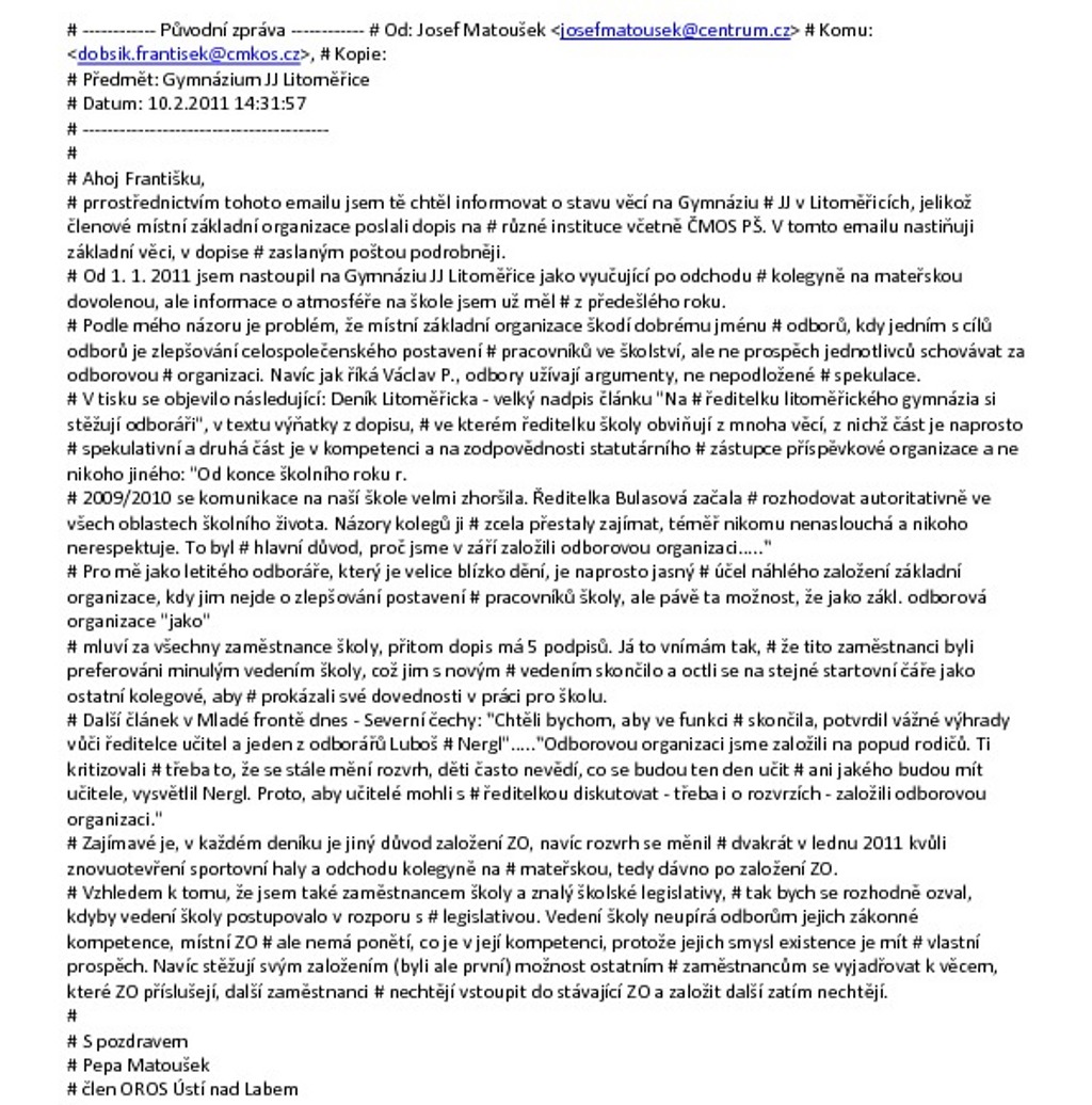 3/ existuje určitá skupina osob, pedagogického sboru, která s tím nesouhlasila.