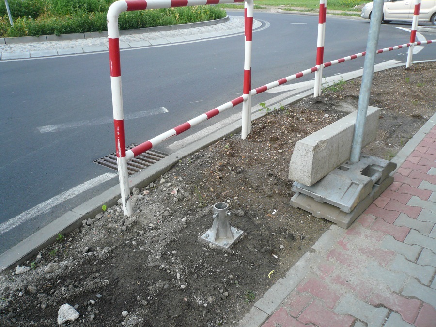 A další kus zábradlí je odstraněn. Pokud to bude pokračovat tímto tempem, zábradlí bude zlikvidováno projíždějícími vozidly.