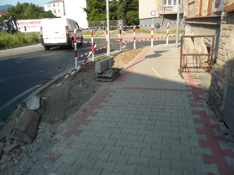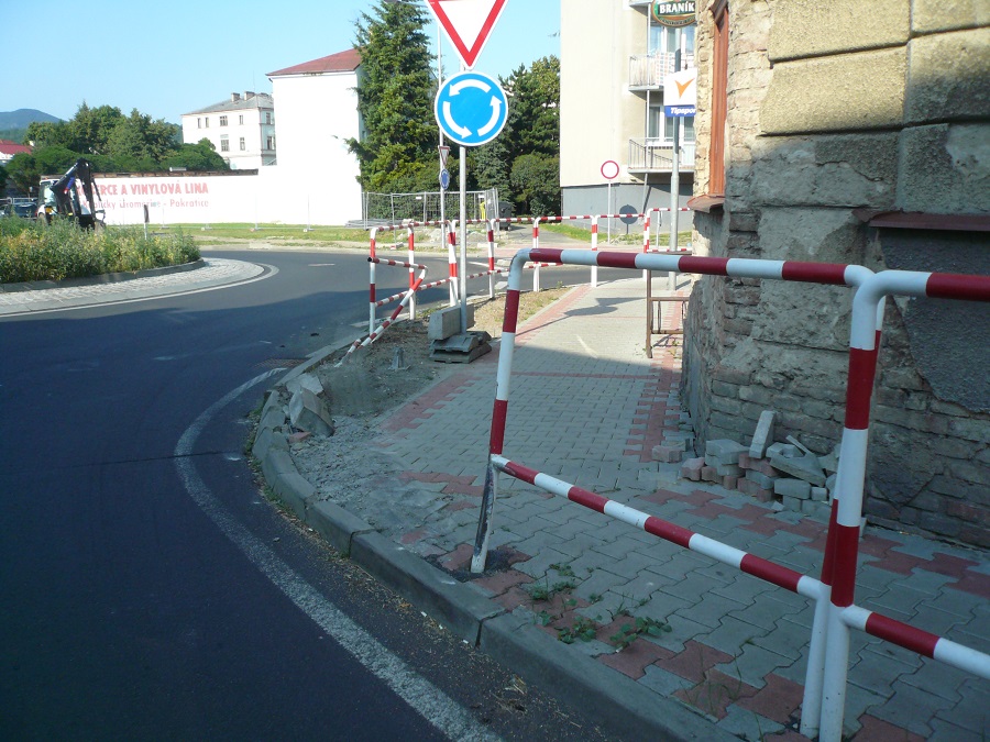 Mám pocit, že na chodník z ulice České armády buď nezbyly žádné peníze , a proto končí pouze u přechodu před kruhovým objezdem, a nebo nebylo propojení s Vojtěšským náměstím vůbec v projektu? Jak jinak si vysvětlit hromady suti, hliněnou udusanou cestu i několik měsíců po celkové realizaci této hrůzné a vlastně i nebezpečné stavby :roll: Vozíčkáři a maminky s kočárky se asi budou muset naučit létat po dešti a v zimních měsících a osatní nazout holinky. Na Vojtěšské náměstí se dá sice projít vnitroblokem kolem garáží a tzv. Hladového okna, ale za tmy asi nic bezpečného a příjemného.