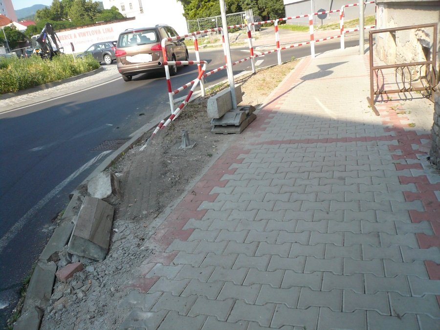 Jinak se jezdí přes obrubníky vesele dál. Zatím jsou sice popraskané, ale ještě drží díky dlažbě.