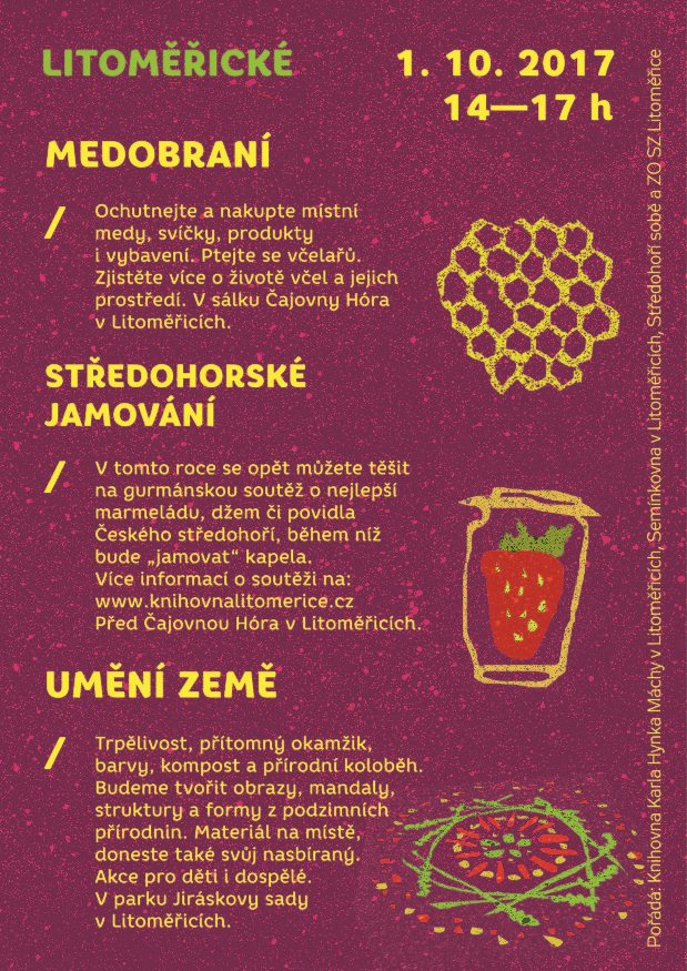 A hned následující den na stejném místě proběhne Medobraní, Středohorské jamování a vedle v parku Umění Země (pozvánka výše v předešlém příspěvku).
