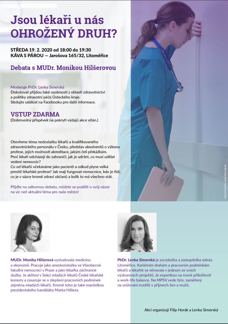 Spolupořádám debatu o budoucnosti lékařské profese, i v kontextu naší nemocnice. Přijďte se zapojit do diskuze nebo si udělat vhled do nejistot lékařů a zdravotnického personálu.