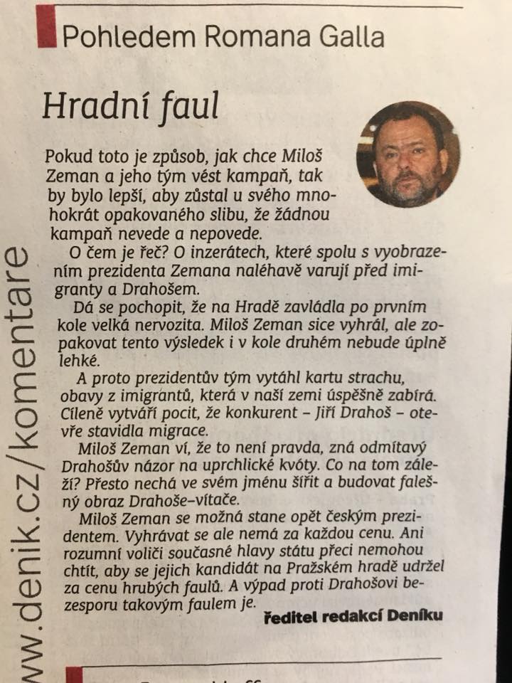 Druhé kolo bude ještě napínavé. Zeman a jeho hradní suita si zrovna servítky nebere a jím vedená kampaň není na úrovni hodné pozice prezidenta. Viz. přiložený komentář.