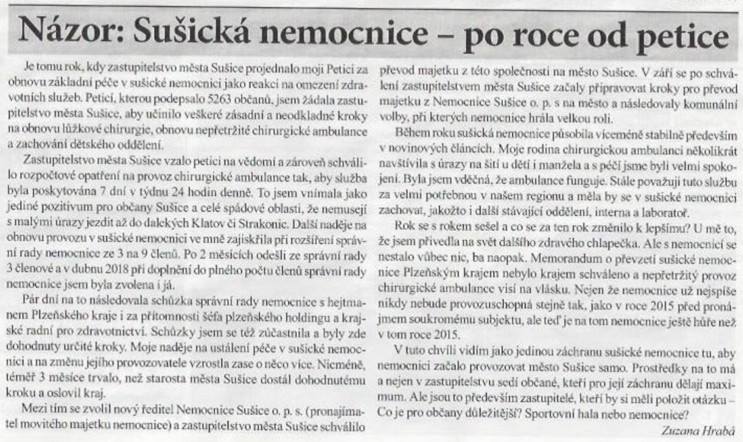 Když už tu píšeme o sušické nemocnici, tak jeden vložím jeden článek (snad bude čitelný).