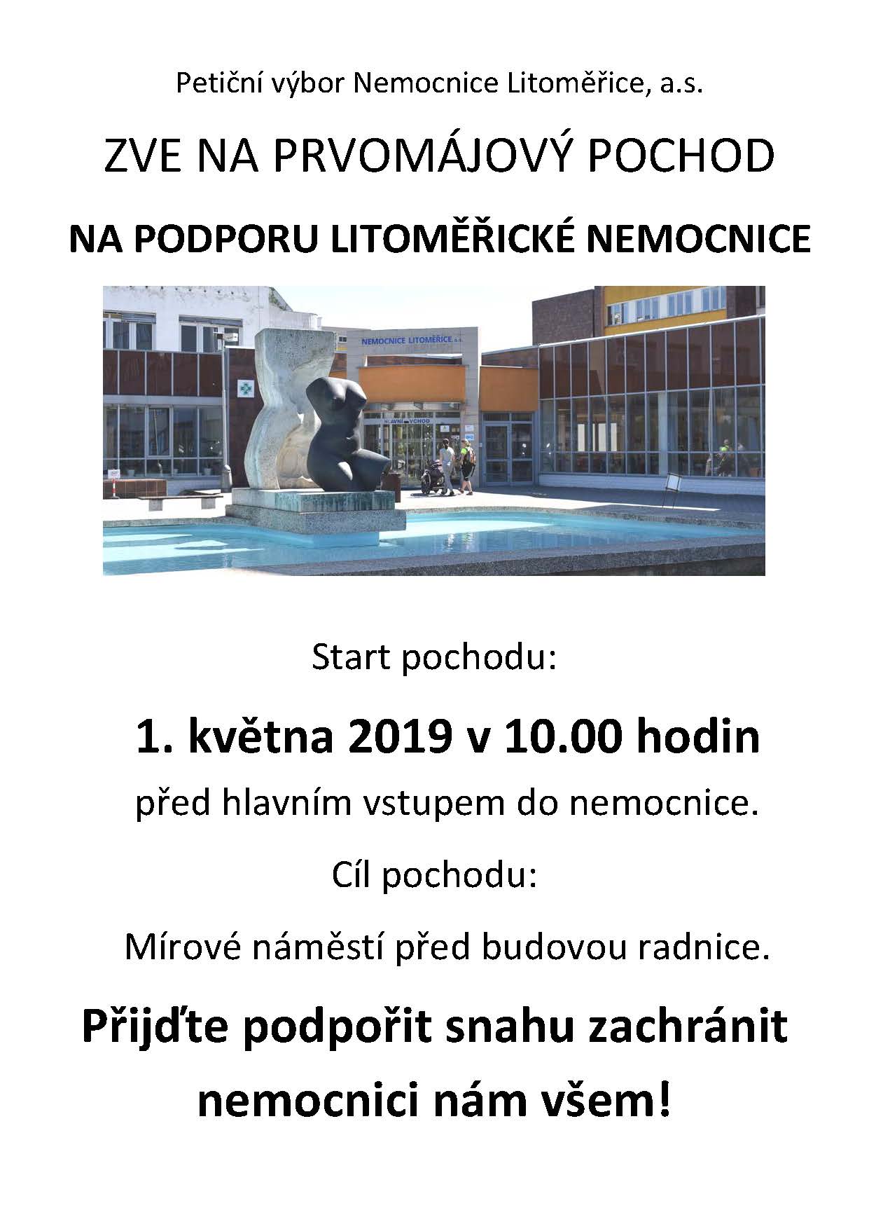 Petiční výbor svolal na 1.5. od 10 hod. prvomájový pochod od nemocnice k radnici. Prosím přidejme se v co nejhojnějším počtu, ať tuto akci na záchranu naší nemocncie podpoříme.