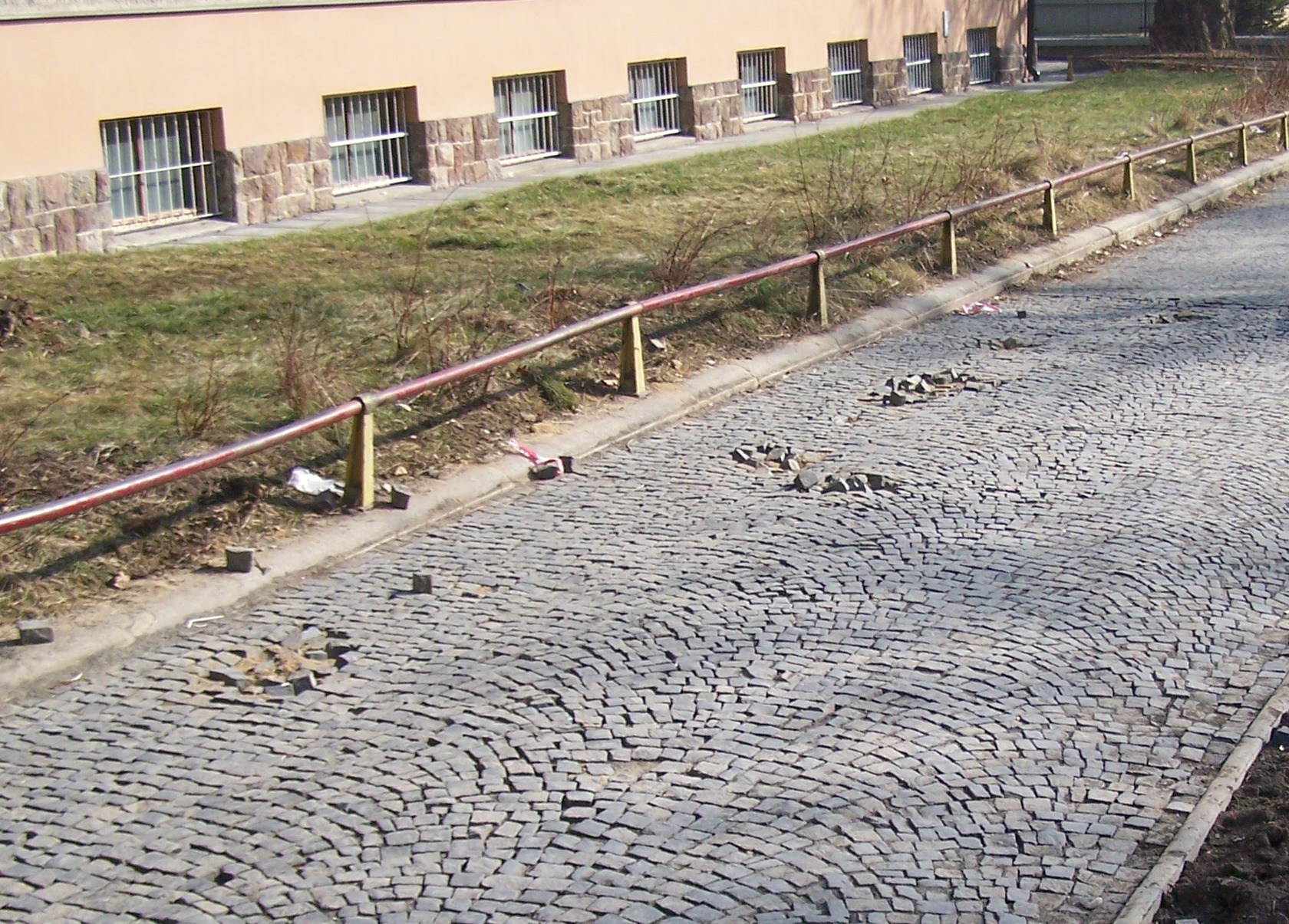 Dlažební kostky tam vždycky byly. Chodník byl ale rovný a v bezvadném stavu. Několikrát rozkopaný chodník a následně vždy špatně odvedená práce z něj udělalo to, co je tam dnes. Poslední oprava je katastrofální. Snad to firma, která tam naposledy kopala, dá aspoň s jarem trochu dohromady.