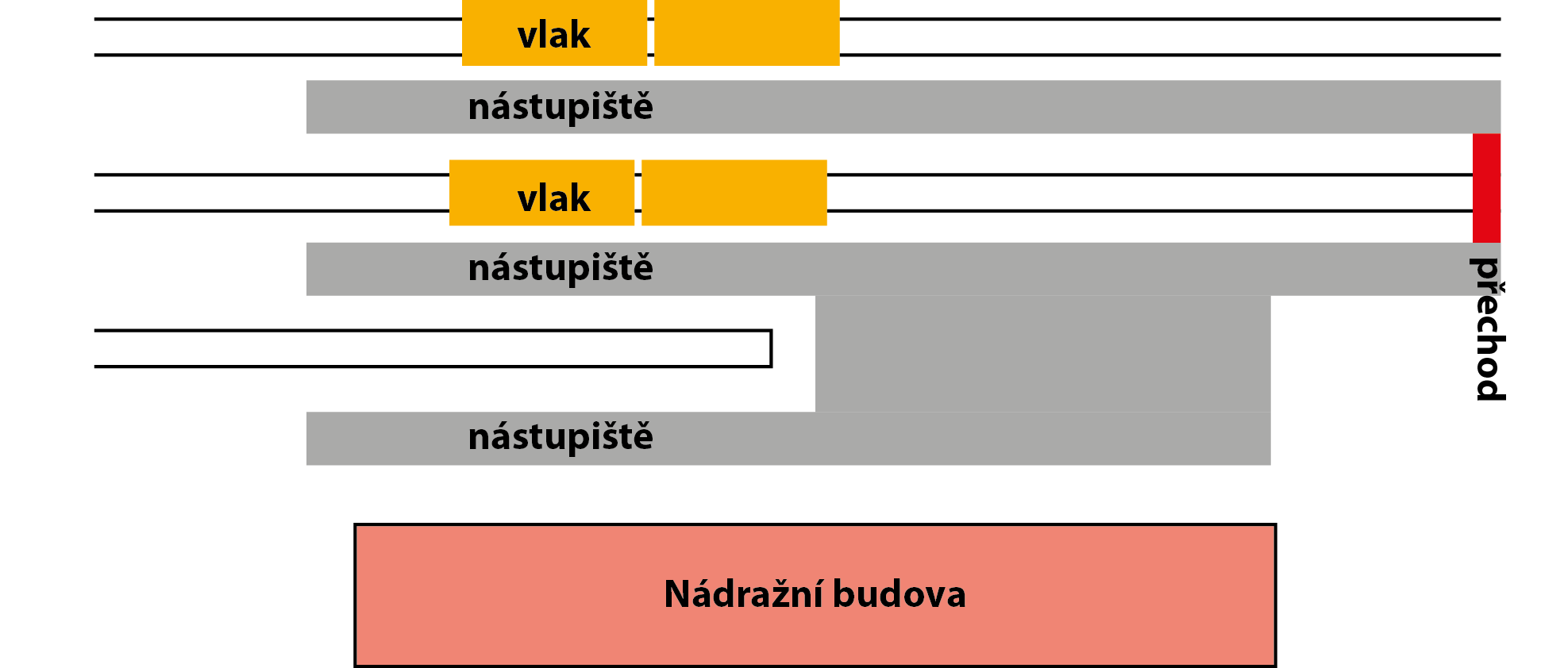 Tak to nevím, nejezdím moc, ale vídám jen dva vagony, obrázek je velmi hrubě orientační, poměry určitě nesedí, neměřil jsem to, ale tak nějak to asi sedí. Nekritizuji vzdálenost přechodu, chápu, že to je daň za bezpečnost, ale bohužel to je snížení komfortu a prodloužení odbavení. Možná by k tomu mohl říct něco nějaký mašinkář, já jsem fakt jen velmi občasný cestující :)