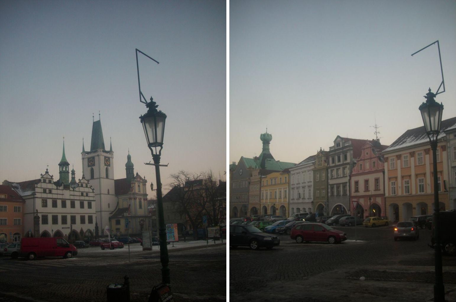 To, co mi málem způsobilo " Držkopád ", jsou nástavby na replikách starých luceren zde na náměstí. Tato zhovadilost, která ve formě "malých " šibenic se zavěšenou vánoční dekorací zdobí i Velkou Dominikánskou. Zde tyto šibenice krášlí obdobně zhyzděné kandelábry po hezkých pár roků bez následné mimosezónní demontáže. Prostě: "Genius loci se v tomto městě ztrácí z očí ! "