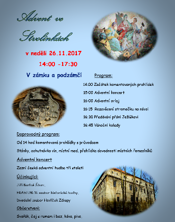 26.11.2017 od 14.00 - 17.30 h. Advent na zámku ve Stvolínkách. Program v příloze.