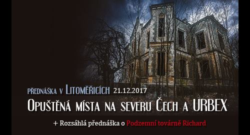 4. Celou přednášku samozřejmě obohatíme o naše vlastní vtipné, či smutné historky z Urbexu a pokusíme zodpovědět veškeré vaše dotazy.