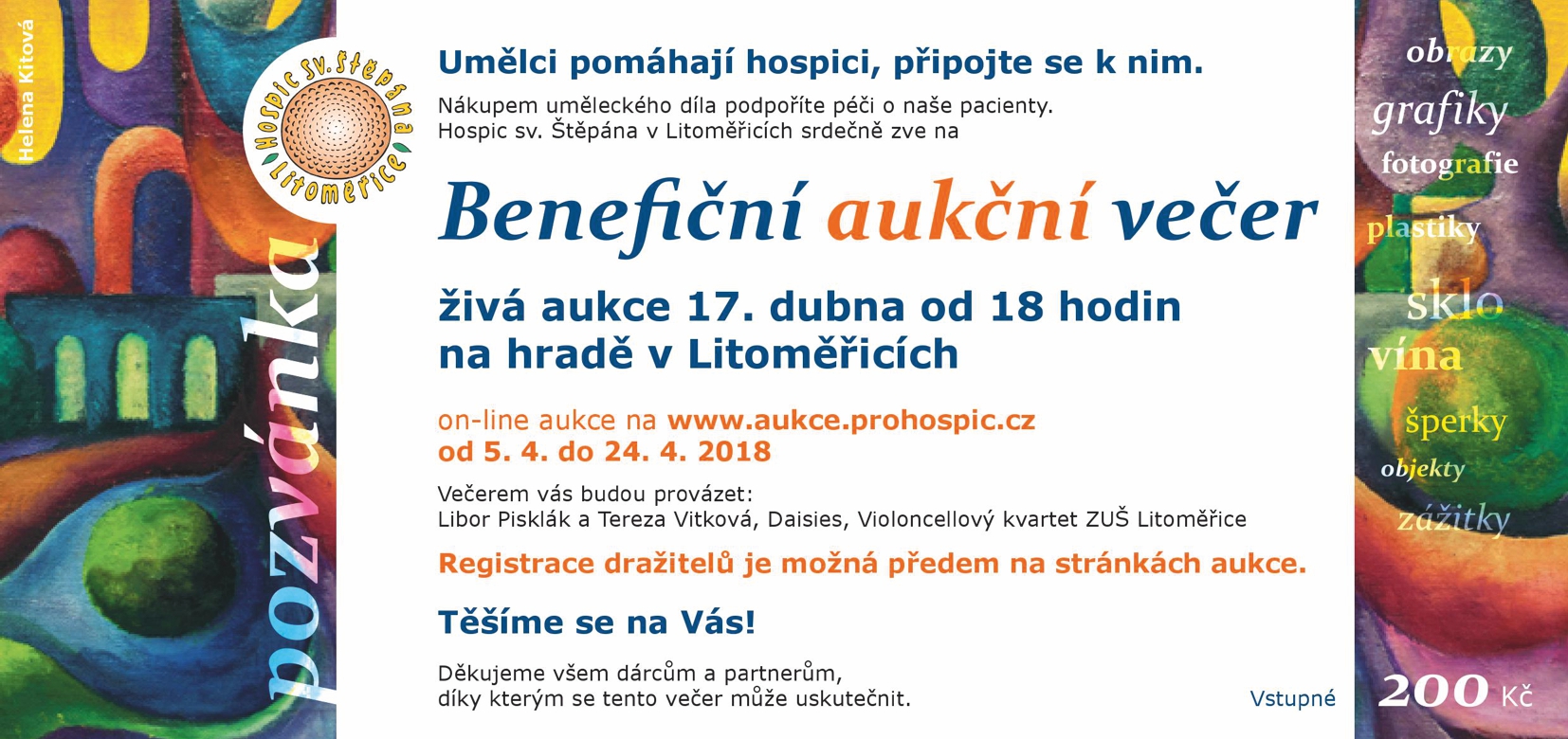 Hospic sv. Štěpána srdečně zve na Benefiční aukční večer 17. dubna na hradě v Litoměřicích.