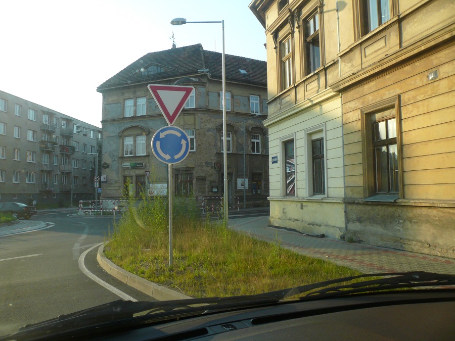 Ano, kruhový objezd se pěkně po dešti zazelenal a lebeda brání hezky ve výhledu.