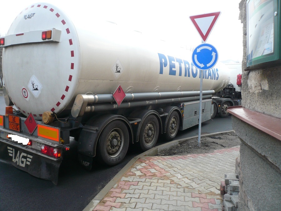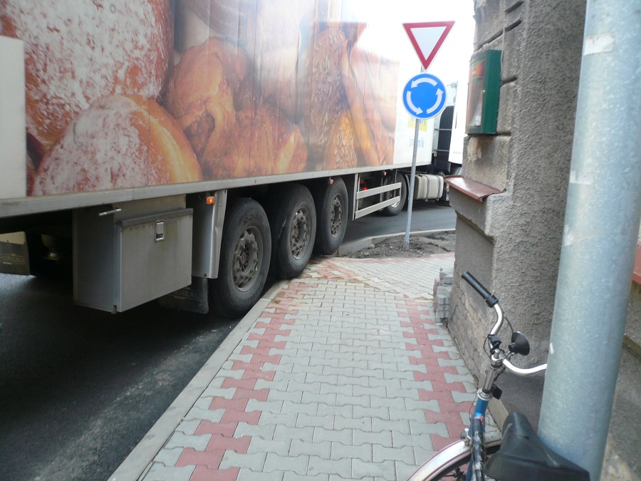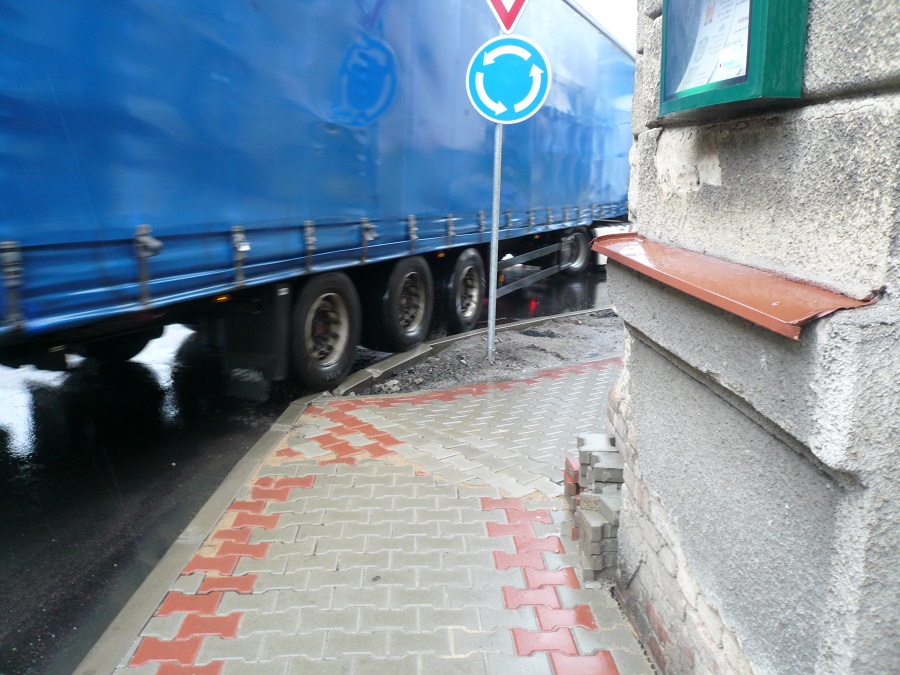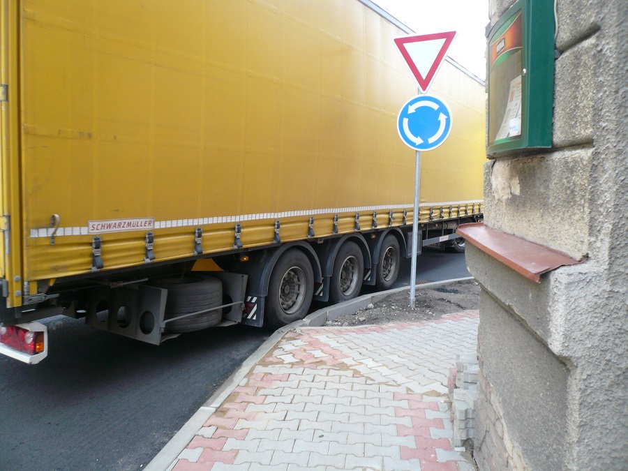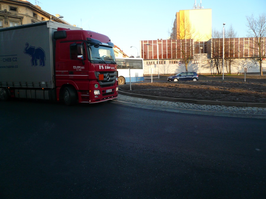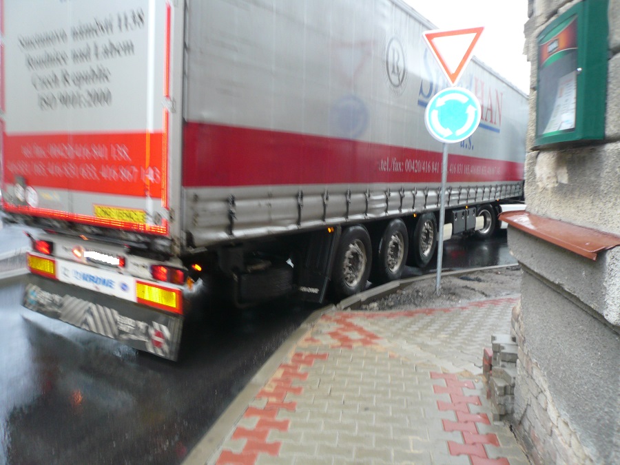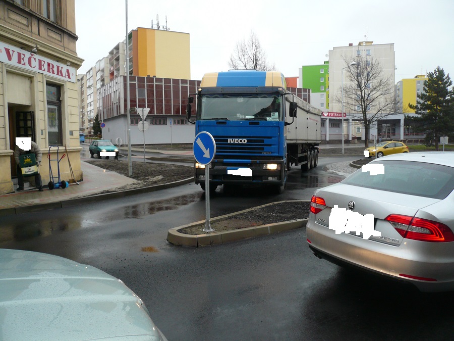 4. Jsem názoru, že při zvýšené opatrnosti, ohleduplnosti a řidičských schopnostech je kruhový objezd průjezdný i pro velké soupravy / ne nadměrné/.Je potřeba vnímat, že se nejedná o kruhový objezd dálničních parametrů, že reflektuje dopravní poměry uvnitř obce a je postaven na silnici určité třídy.
