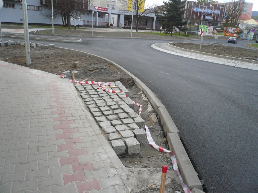To co je vybudováno na komunikaci před gymnaziem, tak to je jeden z typů zpomalovacích prahů - zpomalovací polštář.
