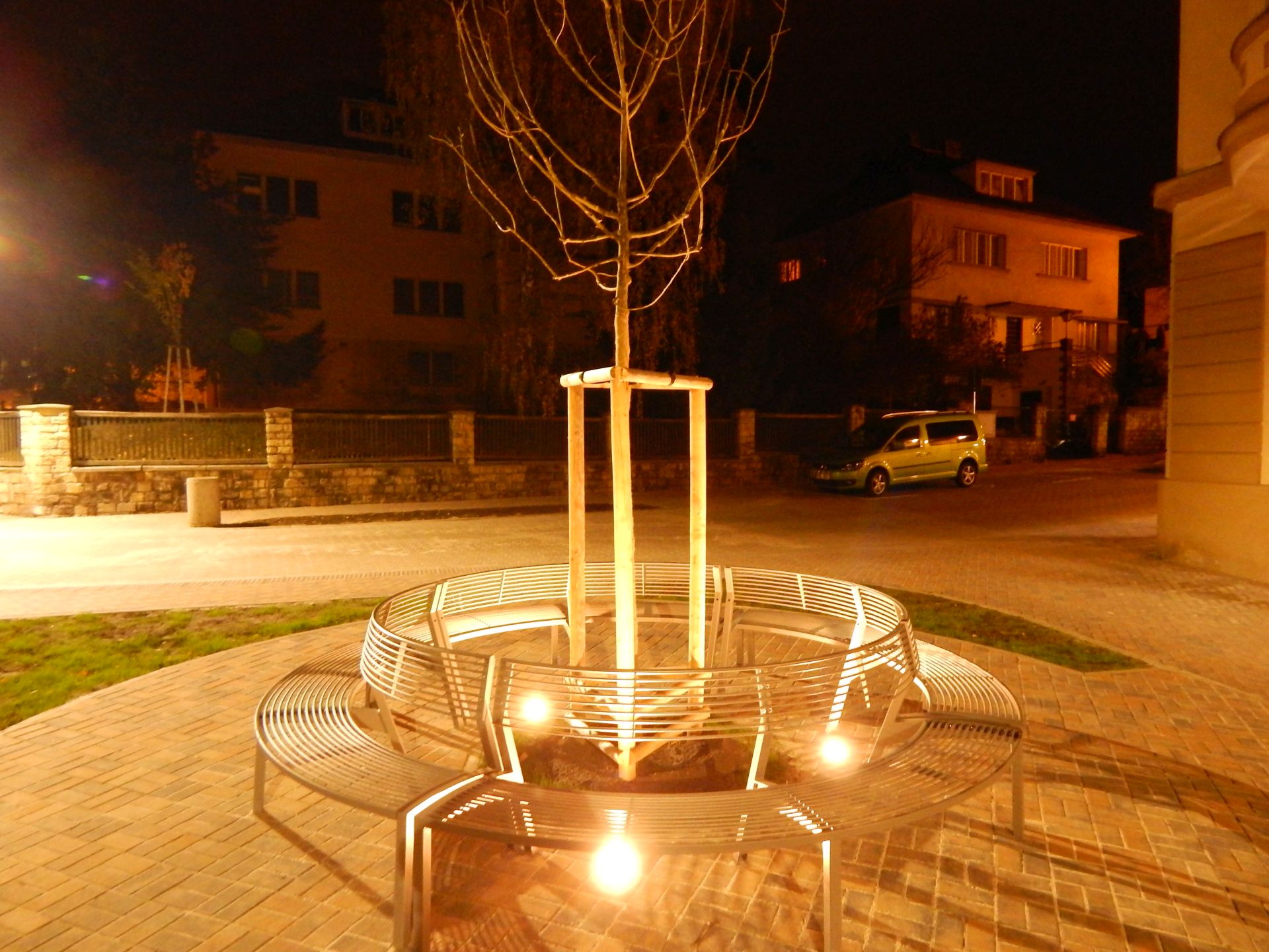 V tom zemním osvětlení stromu, lavičky, případně pozadí uživatelů tohoto posezení se projevuje " osvícenost " zadavatelů této zbytečnosti.